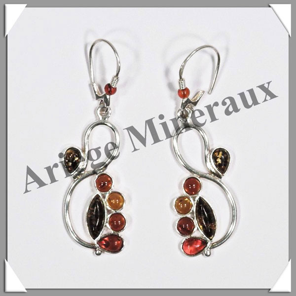 AMBRE - Boucles d'Oreilles Argent - Pendant 6 Cabochons - Dormeuse Fermée - 40 mm - C013