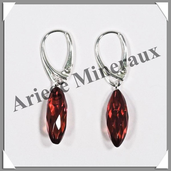 AMBRE - Boucles d'Oreilles Argent - Pendant Ovale Allongé Faceté - Dormeuse Fermée - 35 mm - L018