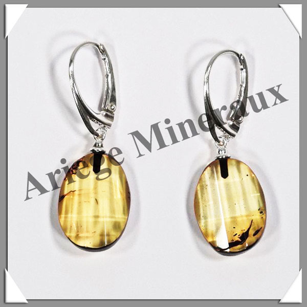 AMBRE - Boucles d'Oreilles Argent - Pendant Ovale Faceté - Dormeuse Fermée - 20 mm - L012