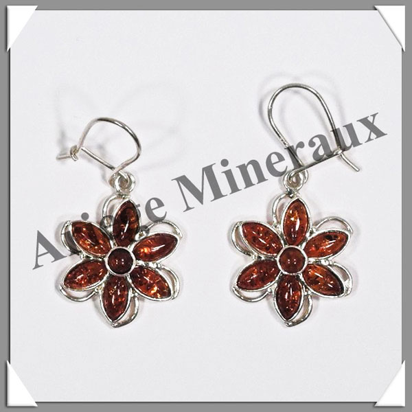 AMBRE - Boucles d'Oreilles Argent - Pendant Fleur 7 Cabochons - Hameçon Fermé - 25 mm - C015