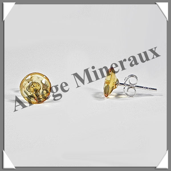 AMBRE - Boucles d'Oreilles Argent - Cabochon Rond - Puce - 8 mm - L002
