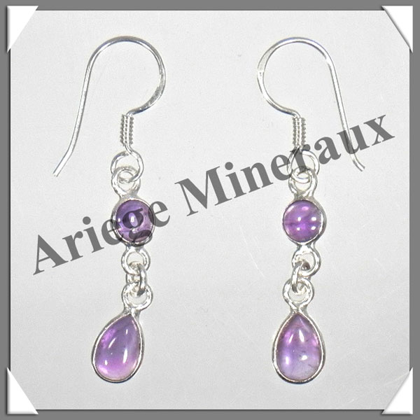 AMETHYSTE - Boucles d'Oreilles Argent - 2 Cabochons (2 Etages) - Hameçon - 25 mm - P012 Brésil