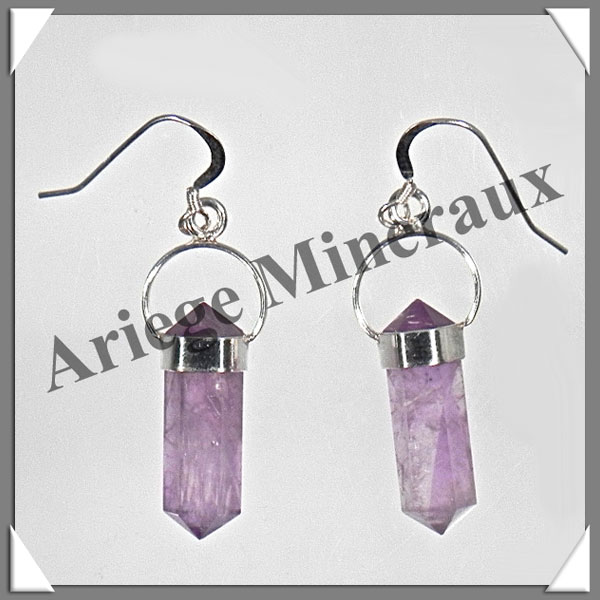 AMETHYSTE - Boucles d'Oreilles Argent - Pendant - Hameçon - 30x8 mm - 30929 - C001