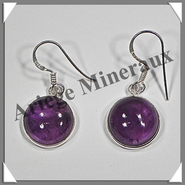 AMETHYSTE - Boucles d'Oreilles Argent - Ronde - Hameçon - Diamètre : 14 mm - W004 Brésil