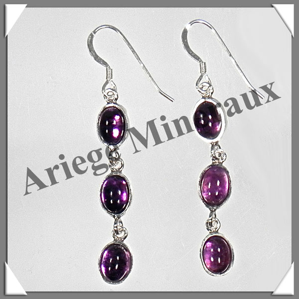 AMETHYSTE Foncée - Boucles d'Oreilles Argent - 3 Cabochons (3 Etages) - Hameçon - 37 mm - 31032 - C001 Uruguay
