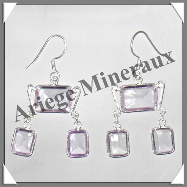 Vendu  AMETHYSTE - Boucles d'Oreilles Argent - 4 Cabochons Facetés (4 Etages) - Hameçon - 50 mm - P006 Brésil