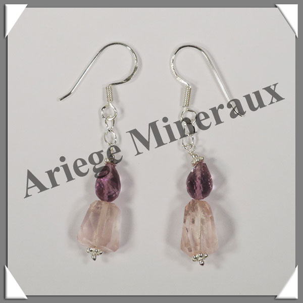 Voir plan du site    Boucles d'Oreilles Argent  Améthyste + Quartz Rose