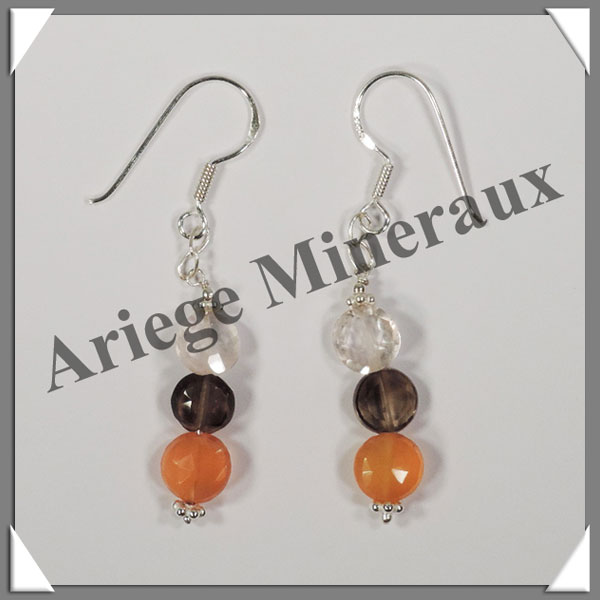 CRISTAL de ROCHE + CORNALINE - Boucles d'Oreilles Argent - Fantaisie - Hameçon - 35x8 mm - W001