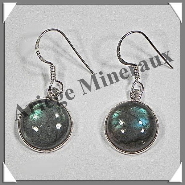 LABRADORITE - Boucles d'Oreilles Argent - Rond - Hameçon - Diamètre : 13 mm - W006