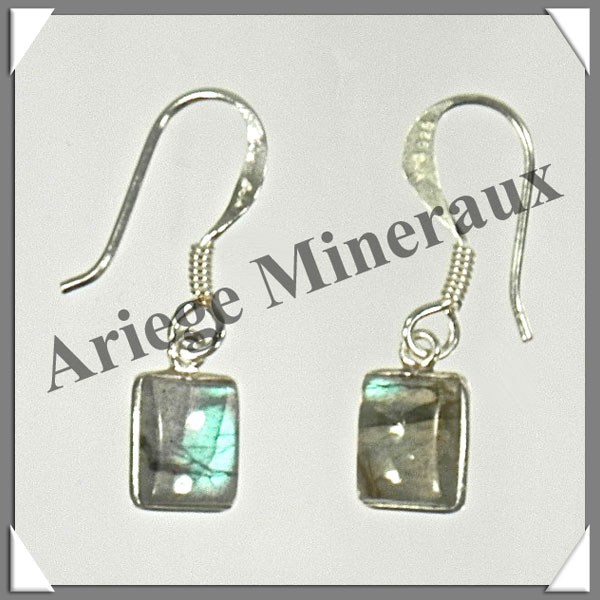 LABRADORITE - Boucles d'Oreilles Argent - Rectangle - Hameçon - 15x10 mm - P007
