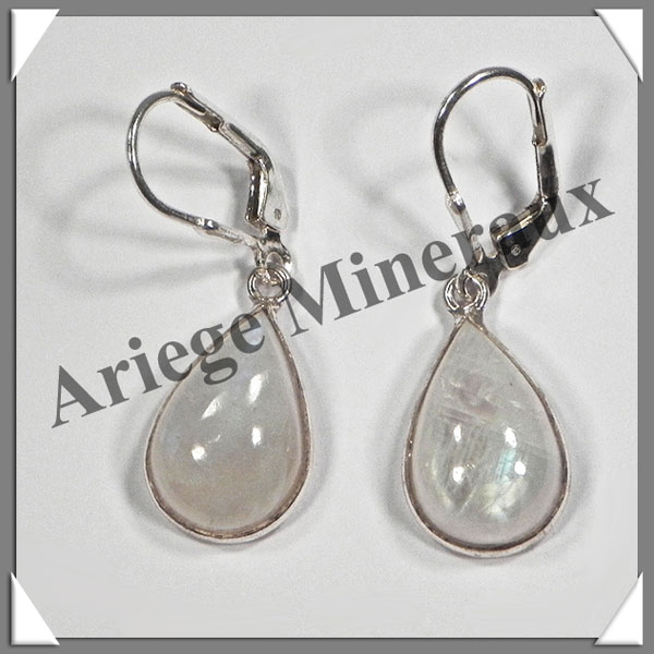 PIERRE de LUNE Bleue (Spectrolite) - Boucles d'Oreilles Argent - Goutte - Dormeuse Fermée - 15x10 mm - W010