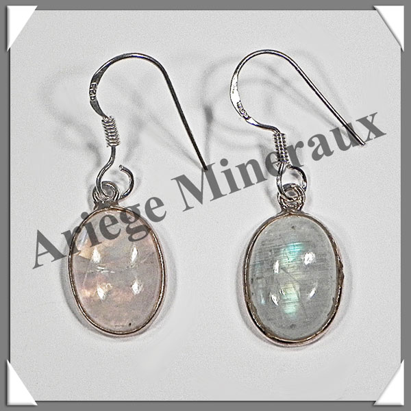 PIERRE de LUNE Bleue (Spectrolite) - Boucles d'Oreilles Argent - Ovale - Hameçon - 15x10 mm - W007