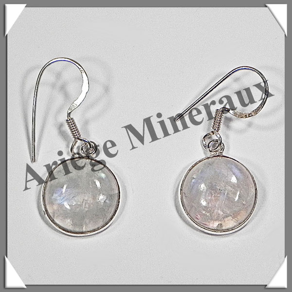 PIERRE de LUNE Bleue (Spectrolite) - Boucles d'Oreilles Argent - Rond - Hameçon - Diamètre : 14 mm - W006