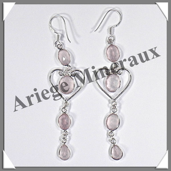 QUARTZ ROSE - Boucles d'Oreilles Argent - 4 Cabochons Facetés (4 Etages) - Hameçon - 70 mm - P003
