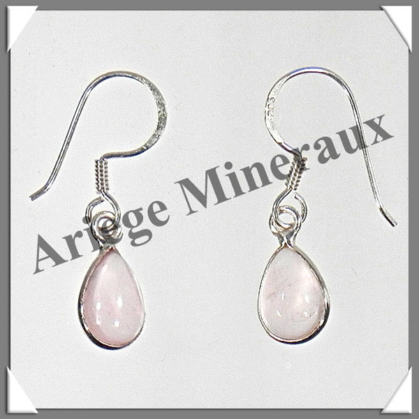 QUARTZ ROSE - Boucles d'Oreilles Argent - Goutte - Hameçon - 10x8 mm - P001