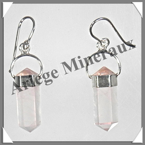 QUARTZ ROSE - Boucles d'Oreilles Argent - Pendant - Hameçon - 30x10 mm - C001