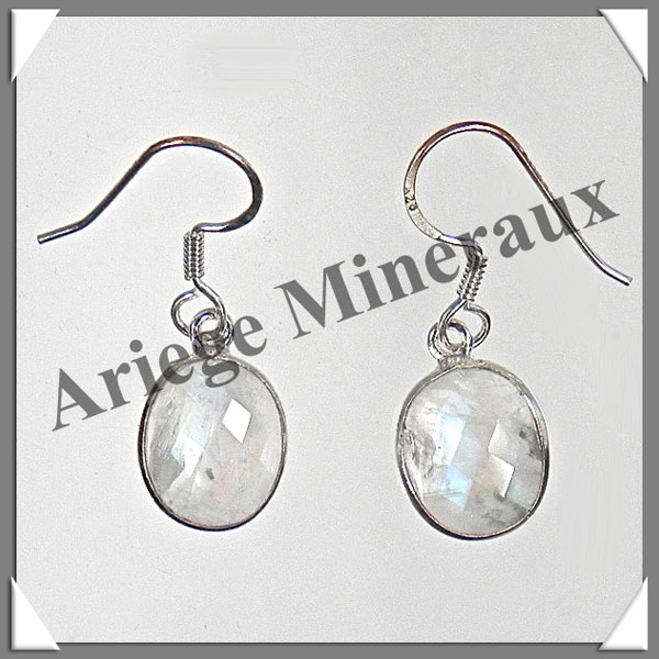SPECTROLITE (Pierre de Lune Bleue) - Boucles d'Oreilles Argent - Ovale Faceté - Hameçon - 15x10 mm - P004