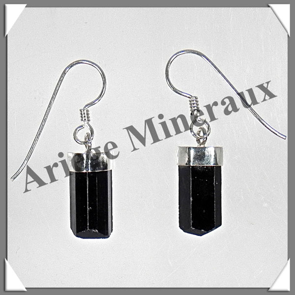 TOURMALINE NOIRE - Boucles d'Oreilles Argent - Pendant - Hameçon - 20x10 mm - C001
