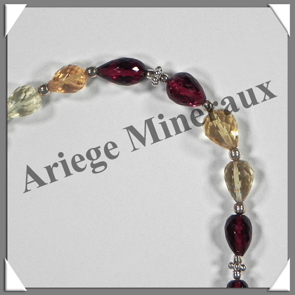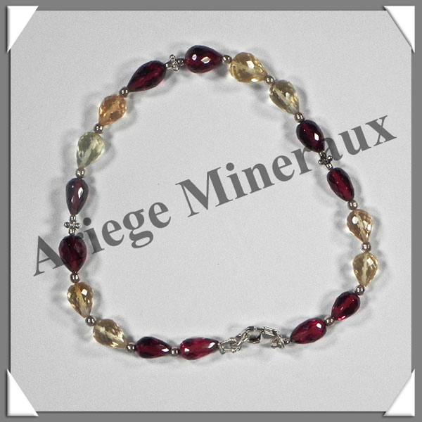 CITRINE et GRENAT - Bracelet Argent - Gouttes Facetées - 20 cm - 74 grammes - W001