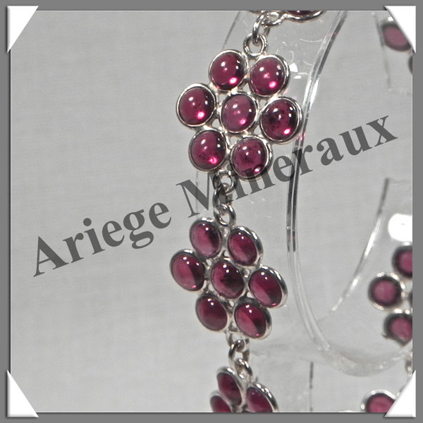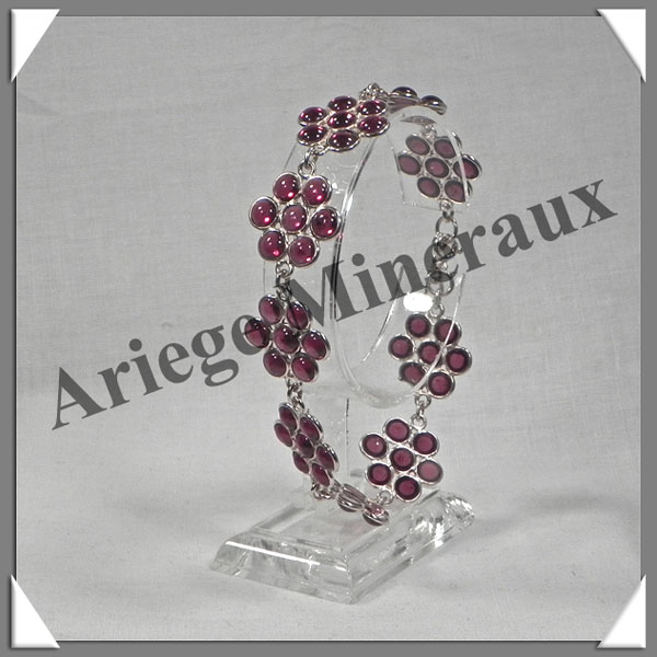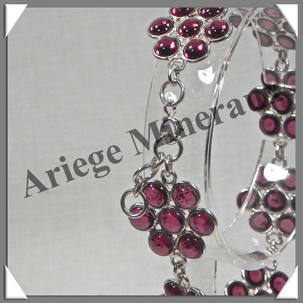GRENAT Cristallisé - Bracelet Argent - 9 Roses de 7 Cabochons - 22 cm - P005 |