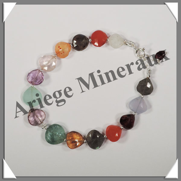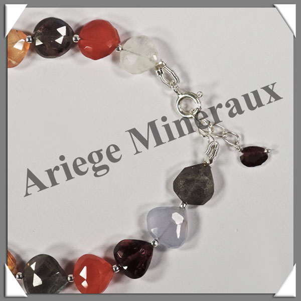 MELANGE de MINERAUX - Bracelet Argent - Coeurs Facetés - 17 cm - 8,8 grammes - W010 |
