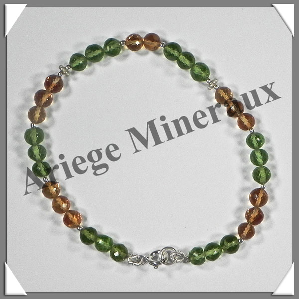 PERIDOT et CITRINE - Bracelet Argent - Perles Facetées - 19 cm - 73 grammes - W001