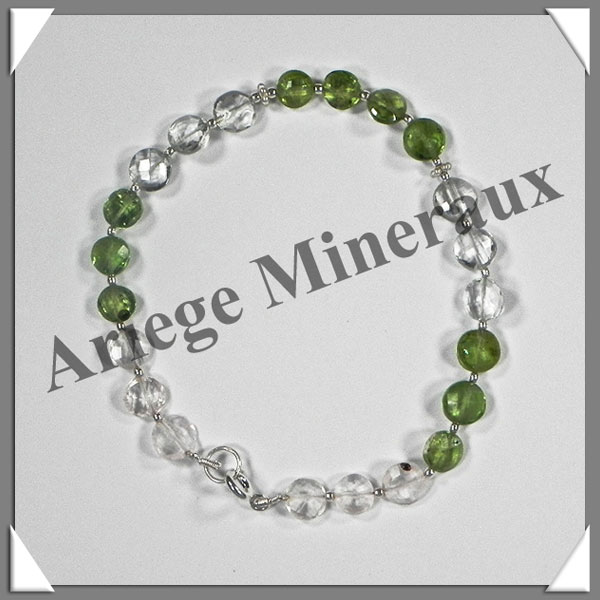 PERIDOT et QUARTZ ROSE - Bracelet Argent - Perles Facetées - 20 cm - 62 grammes - W002