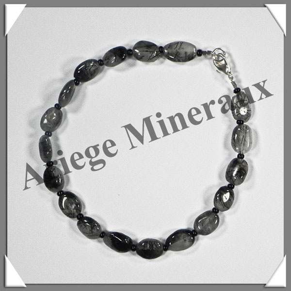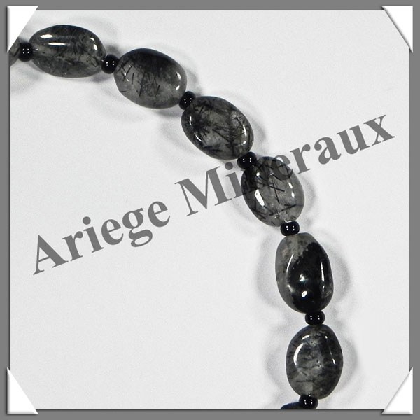 QUARTZ TOURMALINE - Bracelet Argent - Perles Ovales - 22 cm - 100 grammes - W001