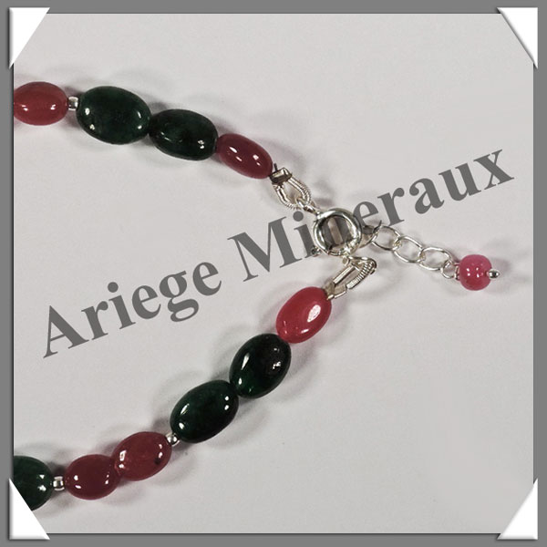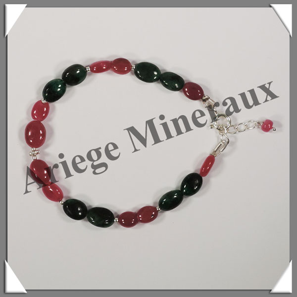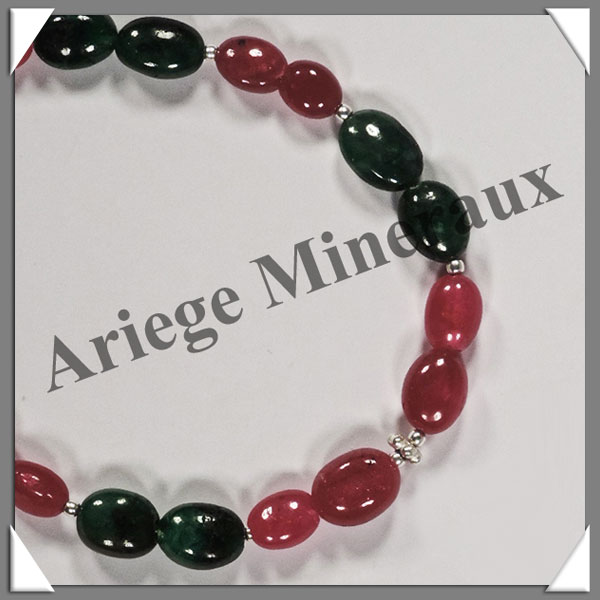 RUBIS + EMERAUDE - Bracelet Argent - Perles Ovales - 16 cm - 7,9 grammes - W001