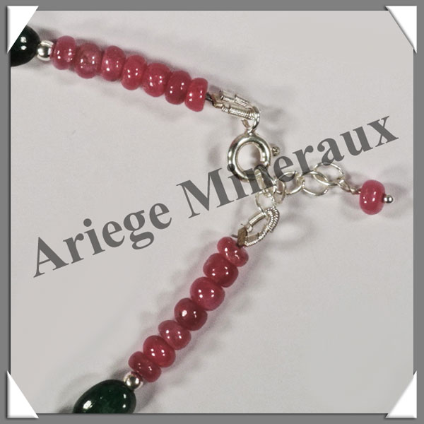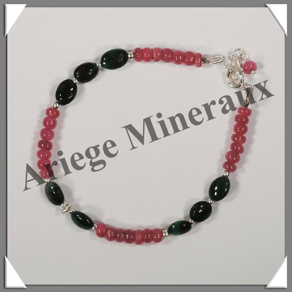 RUBIS + EMERAUDE - Bracelet Argent - Perles Ovales - 16 cm - 7,9 grammes - W001 Inde