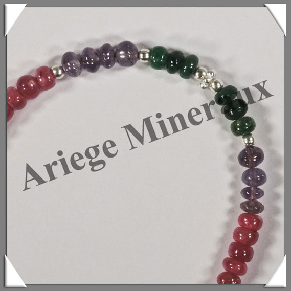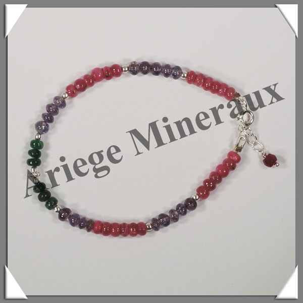 RUBIS + SAPHIR + EMERAUDE - Bracelet Argent - Disques - 18 cm - 5,4 grammes - W001