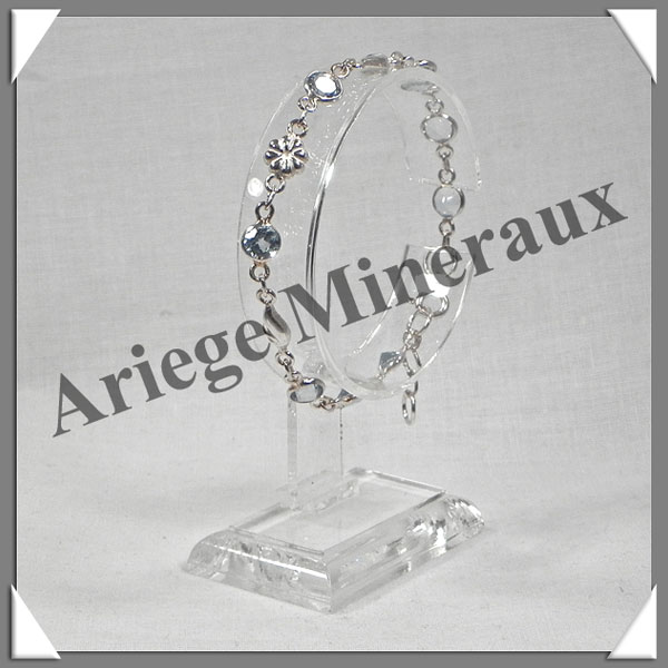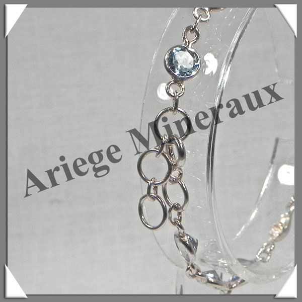 TOPAZE BLEUE Cristallisée - Bracelet Argent - 8 Cabochons Facetés - 20 cm - P001 |