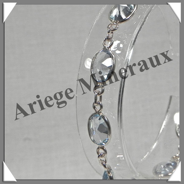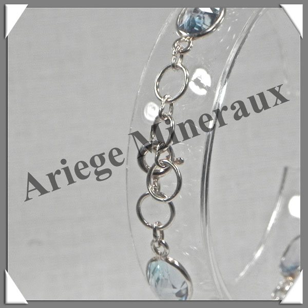TOPAZE BLEUE Cristallisée - Bracelet Argent - 9 Cabochons Facetés - 19 cm - P002 |