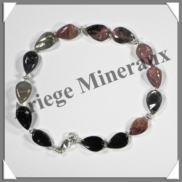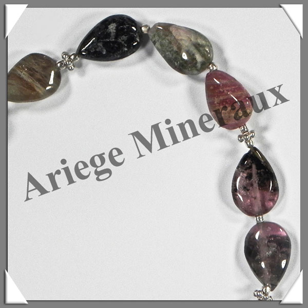 TOURMALINE MULTICOLORE - Bracelet Argent - Gouttes - 21 cm - 98 grammes - W001
