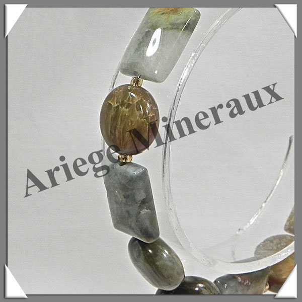 CYMOPHANE ou OEIL DE CHAT - Bracelet Composé - Disques et Rectangles - 19 cm - C009