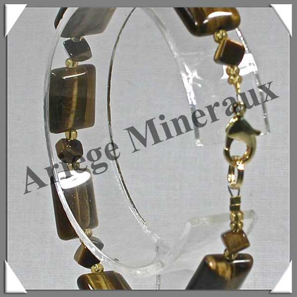 OEIL DE TIGRE - Bracelet Composé Rectangles 10x12 mm et Cubes 4 mm alternés - 19 cm - C001