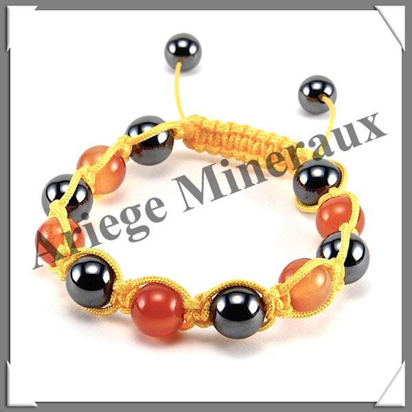 CORNALINE et HEMATITE - Bracelet Shamballa - 11 Perles de 10 mm - Macramé Jaune - A