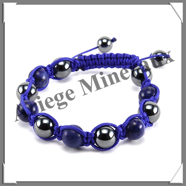 LAPIS LAZULI et HEMATITE - Bracelet Shamballa - 11 Perles de 10 mm - Macramé Bleu - A