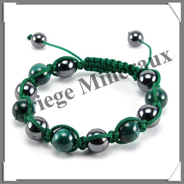 MALACHITE et HEMATITE - Bracelet Shamballa - 11 Perles de 10 mm - Macramé Vert - A