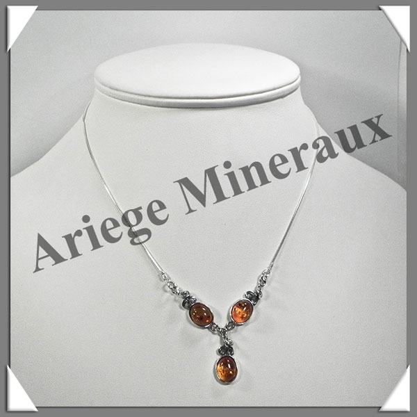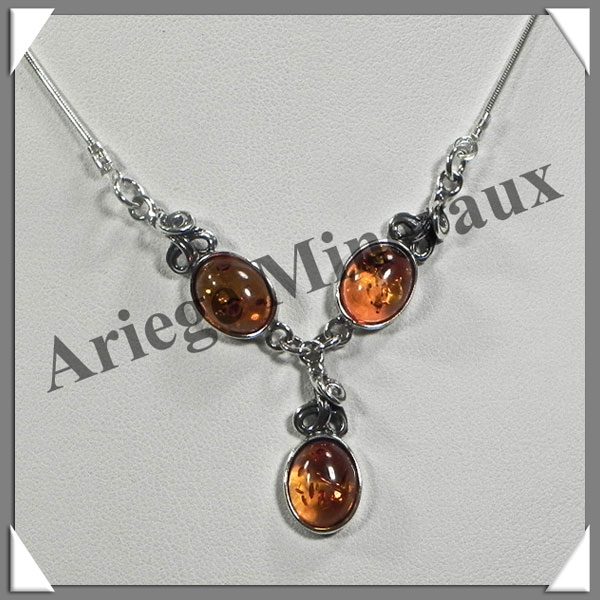 AMBRE - Collier Argent - 3 Cabochons - Caramel Clair - 48 cm - L008 |