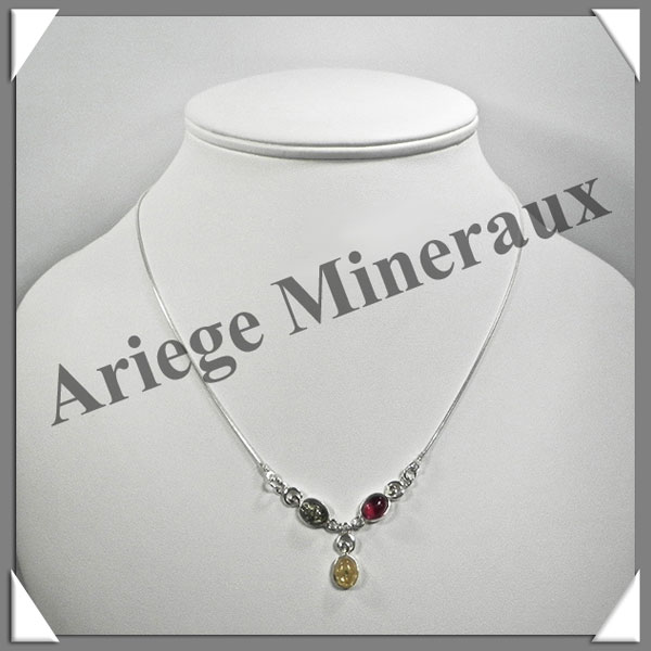 AMBRE - Collier Argent - 3 Cabochons - Tricolore - 48 cm - L006 |