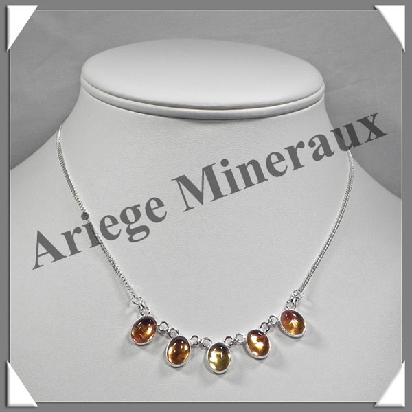AMBRE - Collier Argent - 5 Cabochons - Caramel Clair - 42 cm - L004 |