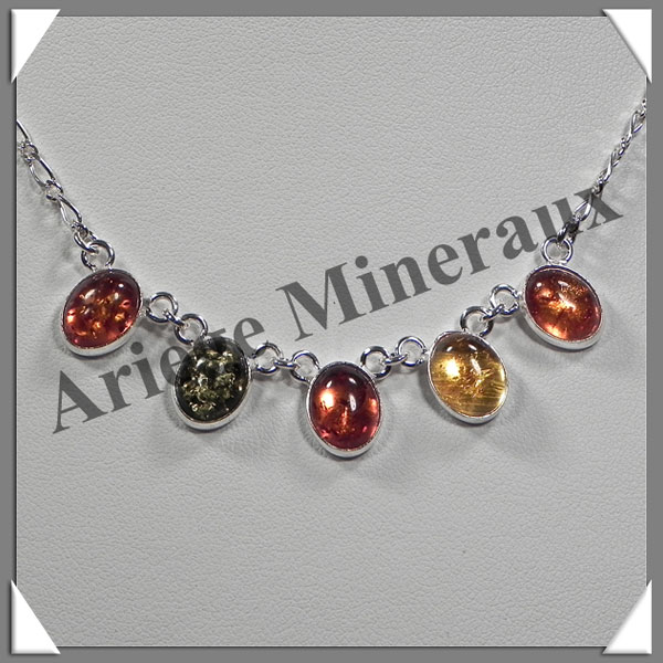 AMBRE - Collier Argent - 5 Cabochons - Tricolore - 42 cm - L002 |