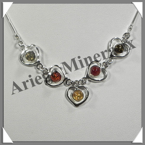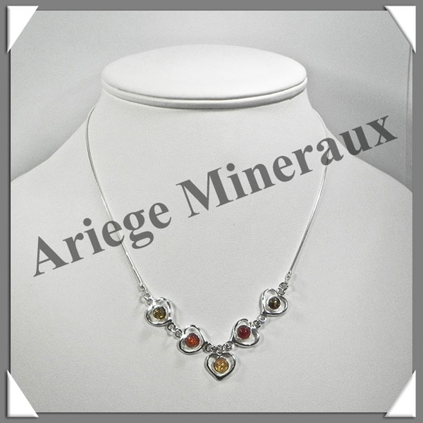 AMBRE - Collier Argent - 5 Cabochons - Tricolore - 48 cm - L006 |