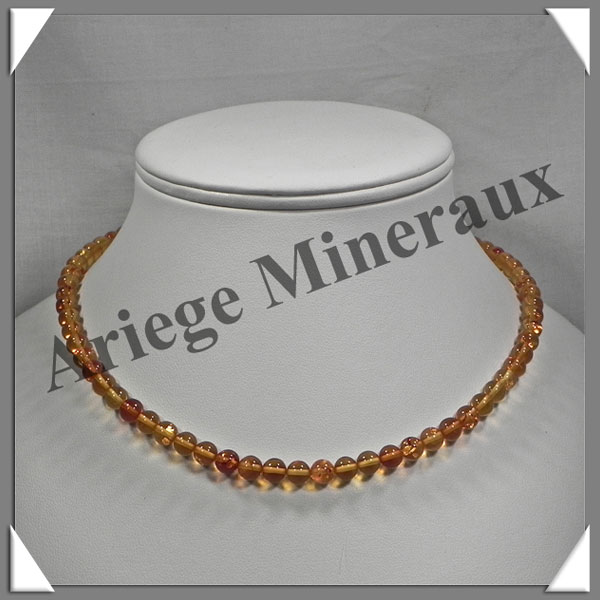 AMBRE - Collier Perles 6 mm - Caramel Clair - 43 cm - C002 |