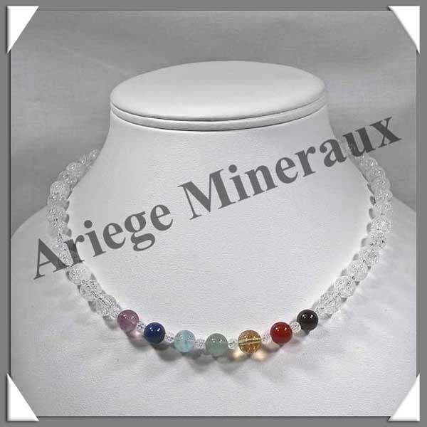 CHAKRAS - Collier 7 Couleurs - Perles 8 mm - Fermoir Mousqueton Argenté Brésil