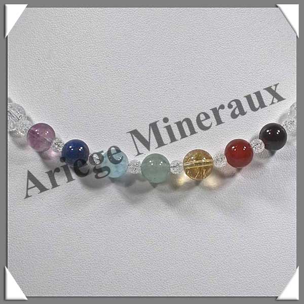 CHAKRAS - Collier 7 Couleurs - Perles 8 et 4 mm - Fermoir Mousqueton Argenté Brésil
