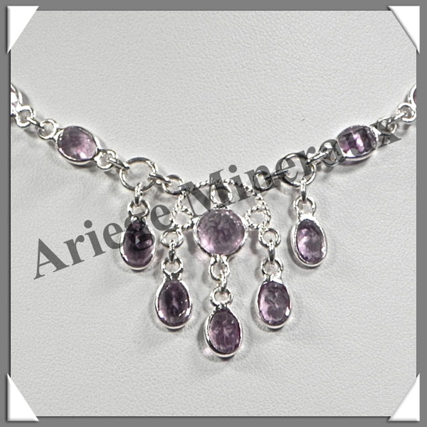 Vendu  AMETHYSTE Cristallisée - Collier Argent - 6 Pierres Facetées - 42 cm - P008 Brésil