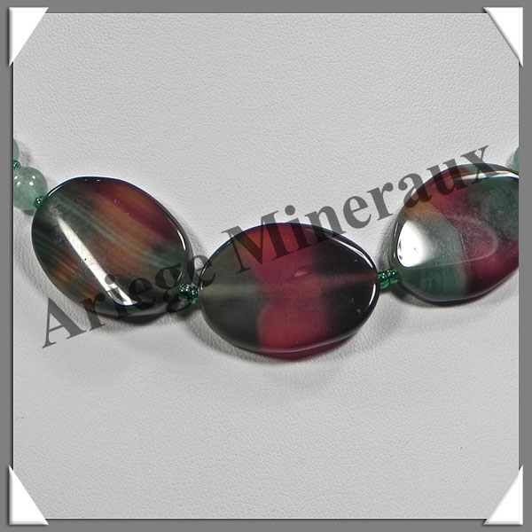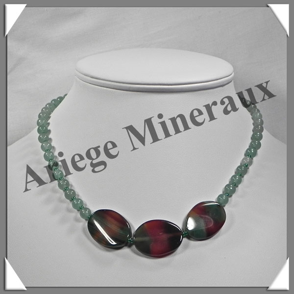 AGATE VERTE et AVENTURINE - Collier Composé - 3 Ovales 25x18 mm - 42 cm - C010