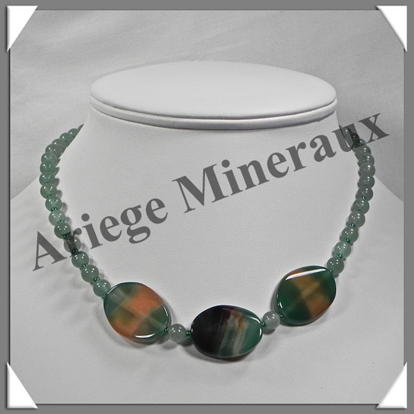 AGATE VERTE et AVENTURINE - Collier Composé - 3 Ovales 25x18 mm - 42 cm - C011